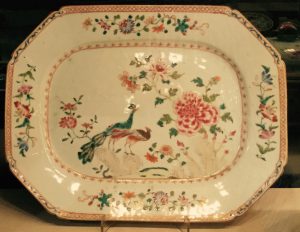 Talvez o «Serviço Real dos Pavões» seja o serviço da «Famille Rose» (se bem que alguns referiam que partilha também dos esmaltes da «Famille Verte») mais célebre que há; deve o nome ao facto de o motivo decorativo, no elemento principal, exibir dois pavões sobre rochas e um ramo de peónias grandes, ambos emoldurados por … Continue a ler O Serviço Real dos Pavões